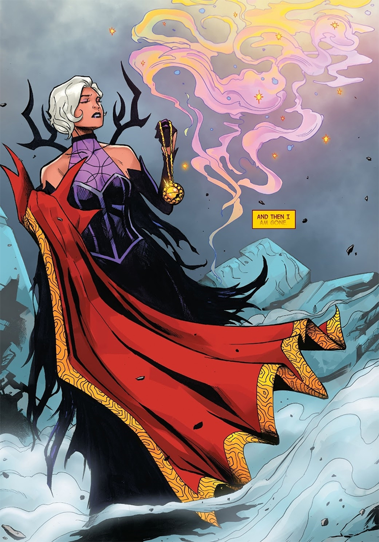 Aunque nunca dice su nombre en la primera escena post-créditos, se aparece ante "Stephen" (Benedict Cumberbatch) para advertirle que sus acciones provocaron una Incursión, el evento en el que dos universos chocan entre sí, poniendo en peligro ambas realidades.