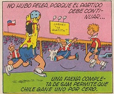 Con diez jugadores el seleccionado chileno se las arregla para mantener la corta ventaja y gracias a Sam que se transformó en la figura de la cancha, se lograron estos tres difíciles puntos que significaron el paso de Chile a la siguiente ronda de la Copa América.