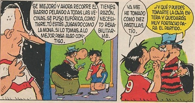 Cansado ya de ser siempre el segundón, El Burro necesitaba brillar tras un inicio algo errático pese a que ya había marcado un gol. Ahí es cuando aparece su tío Anacleto para ofrecerle “aceitunol”, un medicamento para el reumatismo pero que podría servirle para elevar su rendimiento. El jugador toma varias pastillas minutos antes del partido, pero no contaba con que Míster Pipa lo tenía considerado como titular.