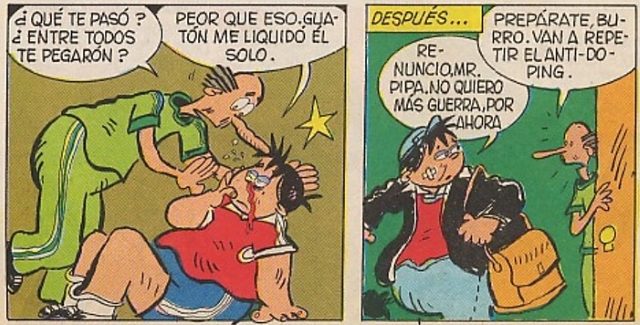 Los resultados inmediatos arrojaron el dopaje del jugador, por lo que Pirulete es acusado del acto, sin embargo a la hora de firmar el informe se da cuenta que su nombre había sido cambiado. Aclarado ese asunto, El Burro se va con todo contra Guatón, quien le gana a los combos y el delantero de Los Hipopótamos termina renunciando a la Selección.