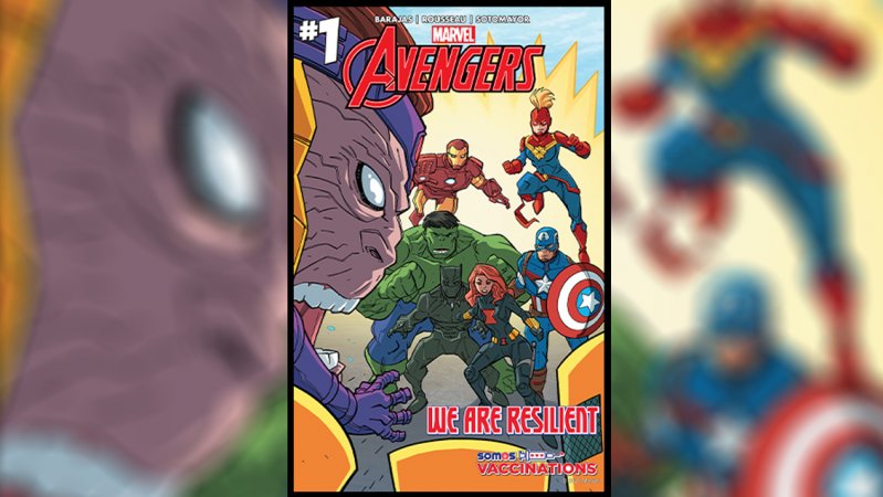 "¡Es hora de ser un HÉROE y vacunarse! Somos RESILIENTES. ¡Somos HÉROES!", dice el mensaje que acompaña el cómic especial destinado a promover la inoculación.