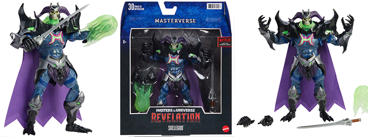 La última figura de acción anunciada es "Skelegod", un juguete algo más grande, de 9 pulgadas, que es básicamente la transformación de "Skeletor" al lograr obtener la "Espada del Poder". Nuestros héroes no lo tendrán fácil.