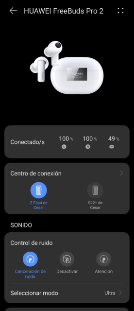 Y pese a que tras la vinculación se pueden utilizar inmediatamente, aquí la recomendación es instalar la app de Huawei AI Life que hará sacar el máximo rendimiento a los Freebuds Pro 2 entregando opciones de niveles de cancelación activa de ruido (ANC), informe sobre la batería disponible, un ecualizador de audio, la opción de encontrarlos mediante un pitido si es que los hemos perdido (cerca) y también el poder personalizar las funciones táctiles. Y ojo que todas funcionan sin necesidad de estar ligadas a un smartphone Huawei.