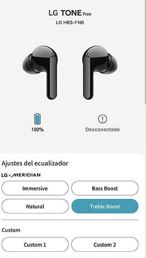 Ahora bien, hablando para lo que realmente son, parto explicando que cuentan con el apoyo de Meridian, la prestigiosa empresa dedicada al audio y la verdad es que se nota porque alcanzan un audio limpio, nítido y justo para lo que uno esperaría. Esto además se calibra a través de una aplicación muy fácil de utilizar y que nos permite elegir el tipo de sonido que buscamos: Inmersivo, Natural, Refuerzo de graves y Refuerzo de agudos. Y otro detalle es que propone un procesamiento espacial, algo que permite simular la experiencia de escuchar a través de altavoces, algo que está pero que no se siente tanto.
