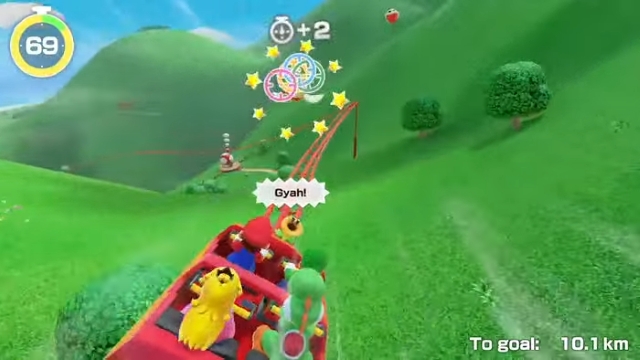 La Switch 2 permite que el juego corra en resolución 4K cuando está en modo dock y 1080p en portátil, manteniendo los 60 fps. La vibración HD2 está más matizada, logrando una retroalimentación táctil precisa en minijuegos como el de la montaña rusa. Incluso se integra el sistema GameShare, que permite compartir el juego localmente sin que todos tengan el título instalado, expandiendo la experiencia.