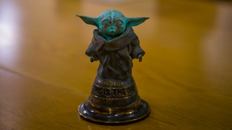 En la cuenta de Twitter de Ghibli (sí, la oficial), este viernes se publicó una foto en la que se observa en primer plano una pequeña figura de "Grogu", el querido personaje sensible a la Fuerza de la serie "The Mandalorian".