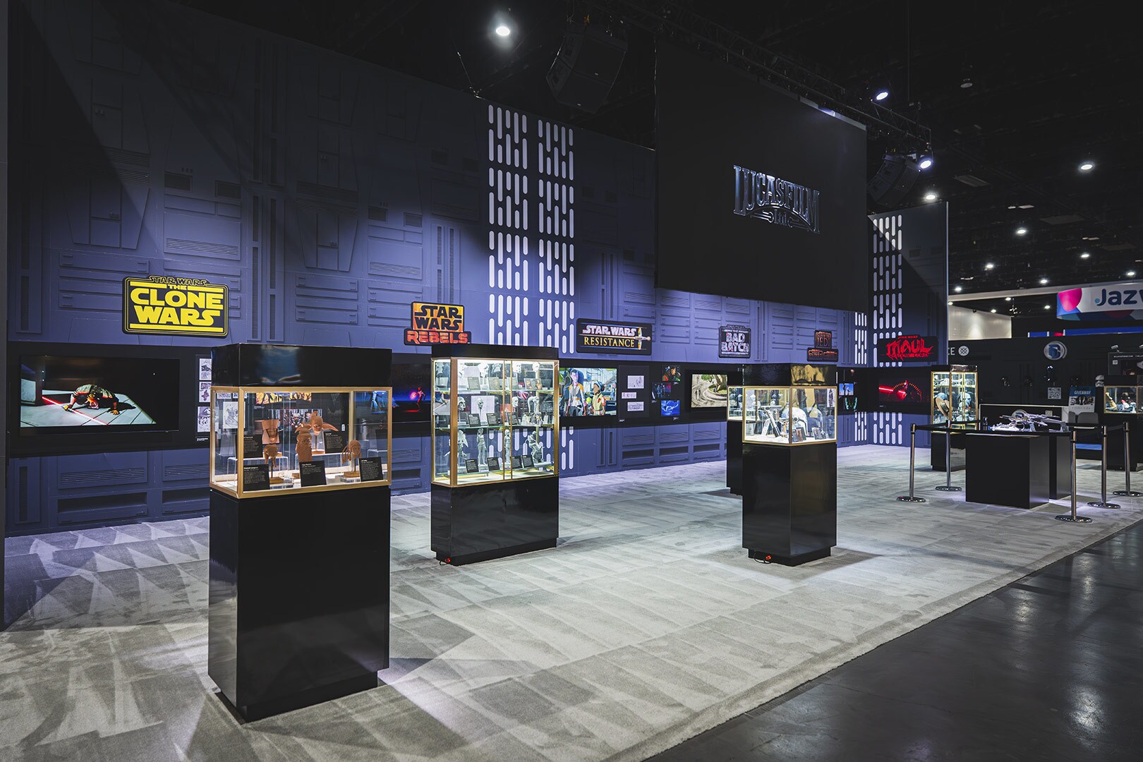 La instalación de Star Wars también cuenta con varias maquetas y naves de las series animadas, además de objetos de la serie Ahsoka, pero un elemento importante del booth viene del propio Filoni.