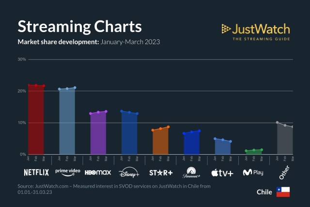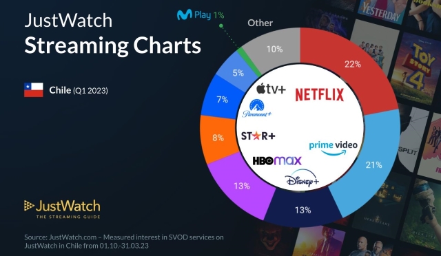 Se mantienen con sus números Paramount+ (7%) y AppleTV+ con sus cinco puntos porcentuales, mientras que el once por ciento restante de la torta del streaming en Chile se reparte en el apartado “otros”.