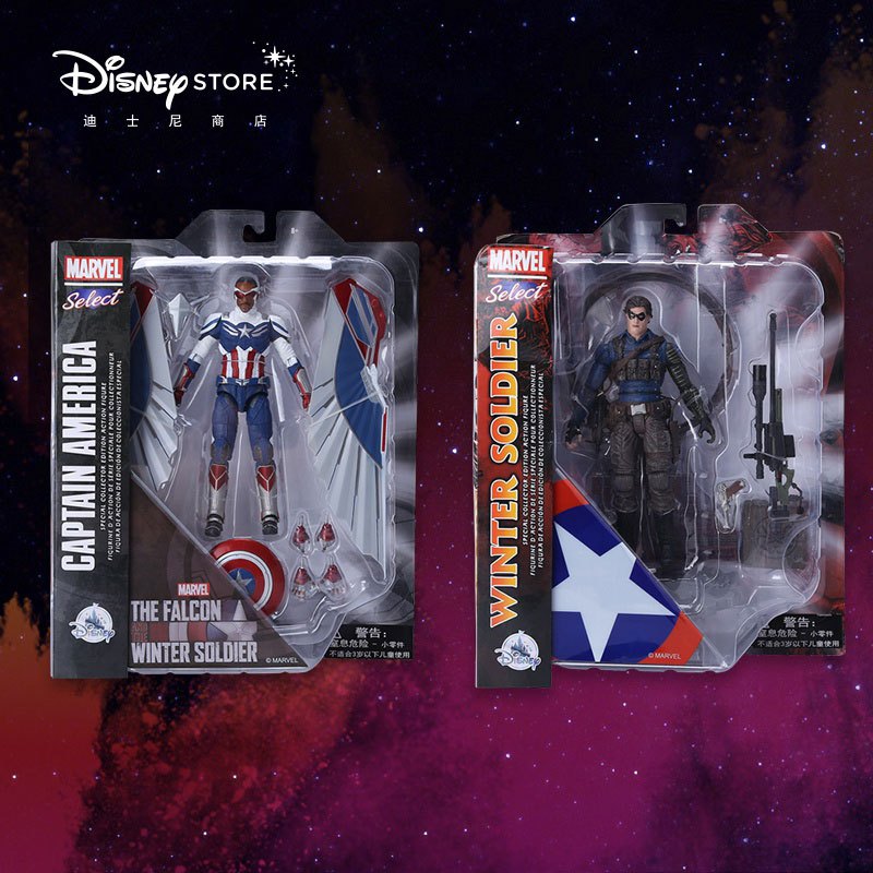Este muñeco de colección corresponde a la línea de figuras de acción Marvel Select, la que ya cuenta con los personajes de la serie y tal como se observa en la imagen, el empaque de este “nuevo” Capitán América incluye las alas, el escudo y unos guantes. En el caso de Winter Soldier, sus accesorios se van más por el lado de las armas y a simple vista, no es tan parecido físicamente a Bucky Barnes.