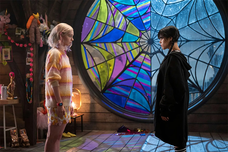Las postales nos adentran en el mundo a explorar de la mencionada academia, incluyendo a los compañeros que tendrá "Merlina", quienes serán tan especiales y misteriosos como ella, y el contraste que entrega el personaje de "Enid Sinclair" (Emma Myers) frente a la joven "Addams".