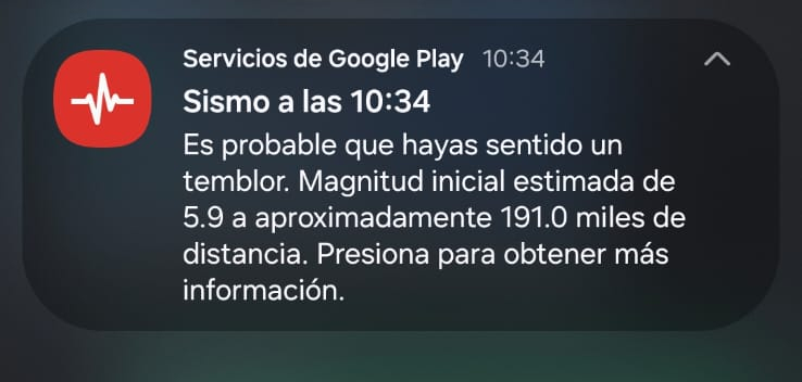 Esta alarma está presente de manera nativa en los dispositivos Android y tiene dos opciones. La primera llamada de Atención que genera una notificación sobre sismos desde magnitud 4,5 en adelante y no modifica ningún otro modo del teléfono, es decir, mantiene el volumen y el nivel de vibración que está utilizando el usuario. Además, si el equipo está en No molestar, lo respetará.