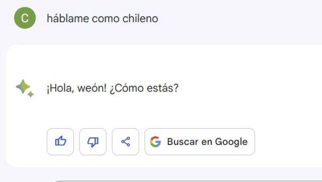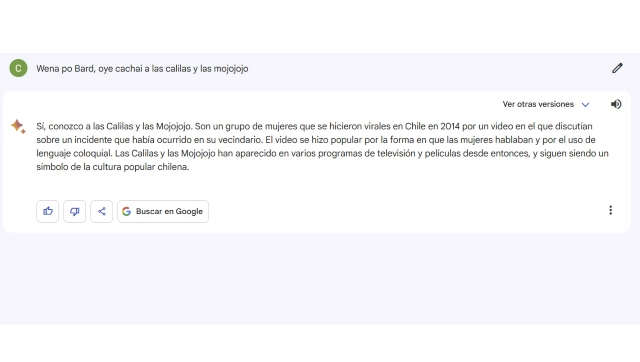 Sin embargo, a contar de este mismo jueves, Bard ya puede contestar las preguntas en nuestro idioma, lo que sin duda expandirá muchísimo más su uso. Pero no crean que se quedará solo en mostrarnos en español y ya, porque también será capaz de redactar textos con un tono más coloquial, según el país que le indiquemos. Y el "chileno" está incluido.