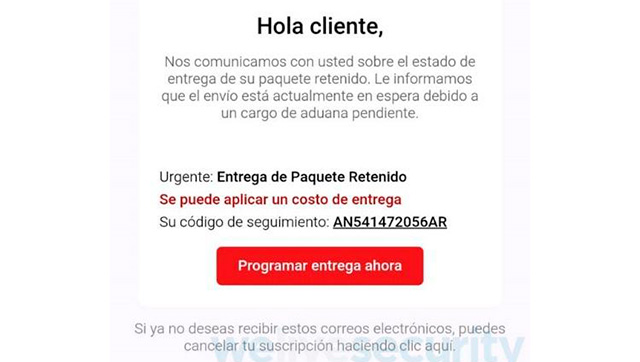 El truco más común es una supuesta actualización de envío o una entrega fallida y en algunos casos, el phishing incluye cargos inventados por aduanas que no existen, llevando a las víctimas a pagar para liberar un paquete que nunca existió. Estos correos suelen incluir errores sutiles de redacción y direcciones web que, aunque similares a las oficiales, redirigen a sitios fraudulentos.