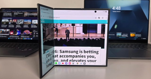 SuperGeek en Las Vegas.- Si bien fue lanzado hace unas semanas ya, Samsung aprovechó las actividades de la CES para mostrar en primera persona al Galaxy Z Trifold, su primer teléfono plegable triple que significa el el salto más grande desde que inició su aventura en este segmento de smartphones, por allá en 2019.