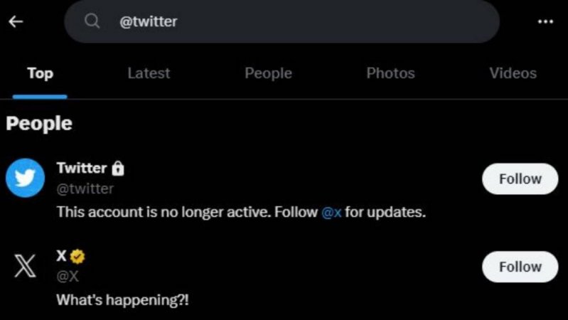 Con el @X quedando bajo el control de Musk y su compañía, la cuenta @Twitter fue desactivada. "Esta cuenta ya no está activa. Siga @x para actualizaciones", se lee en la actualidad.