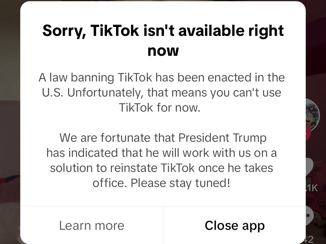 Al intentar acceder a la plataforma, los usuarios recibieron un aviso informando de que la aplicación estaba bloqueada con un mensaje en el que la empresa afirmaba: "Tenemos la suerte de que el presidente Trump ha indicado que trabajará con nosotros en una solución. ¡Permanezcan atentos!".